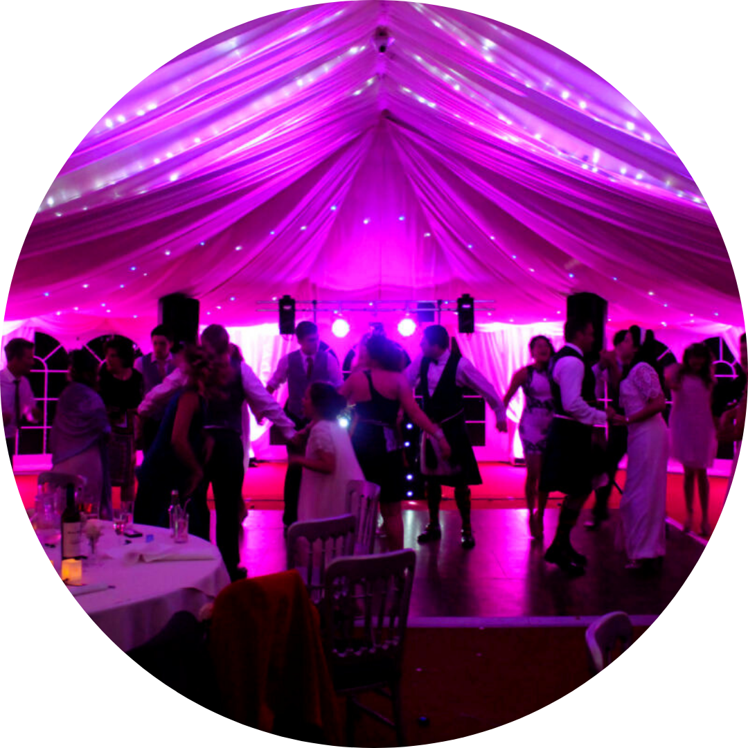 We have a whole range of professional sound & lighting equipment to choose from, from stylish uplighting to incredible lasers and strobes and even light up DJ booths for a fantastic looking setup. Need some extra bass? How about two 800 watt subwoofers to get your guest's feet moving! Add a smoke machine to bring out the lights and set the mood or maybe some UV lighting for a glow in the dark party. The choice if yours, we will make sure planning your marquee party is hassle free and exactly as you require it.